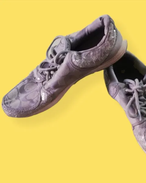 Tenis Coach. Tenis coach plateados, originales, tiene su holograma clásico y lentejuelas. Tiene un pequeño detalle en la parte de adentro atrás que realmente no se ve puesto y no afecta su uso.