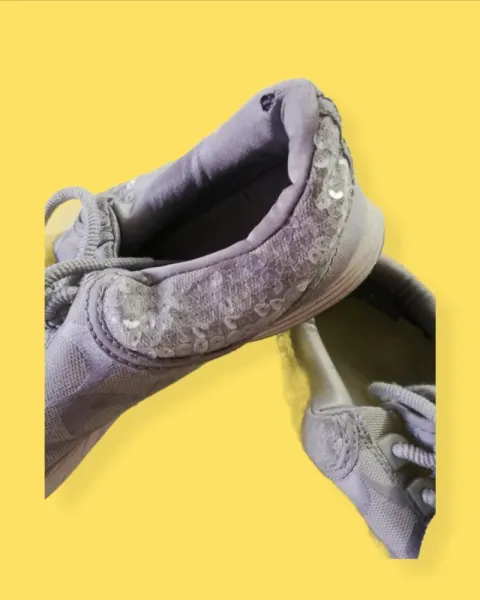Tenis coach plateados, originales, tiene su holograma clásico y lentejuelas. Tiene un pequeño detalle en la parte de adentro atrás que realmente no se ve puesto y no afecta su uso.