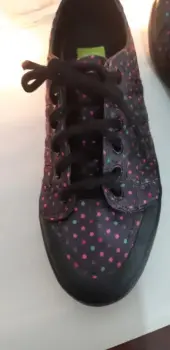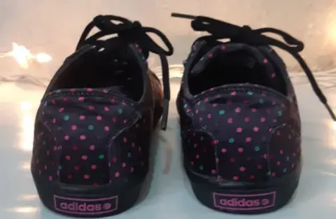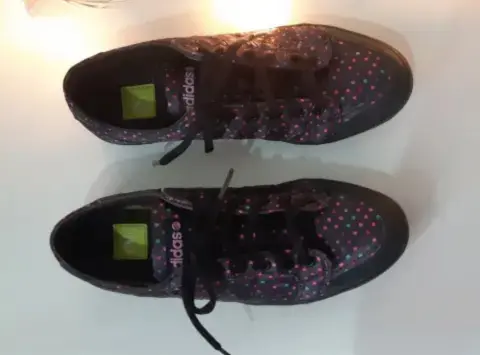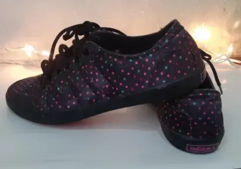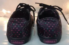 Bonitos y originales tenis marca Adidas, literal están como nuevos, sólo tienen una puesta son color, negro con puntitos de colores padrísimas. Son del número 4