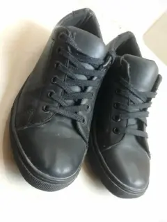 Tenis completamente Negros. Solo se usaron una vez por lo cual no tienen Ningun detalle y la suela esta como nuevaEn el tennis dice ser número 25Pero vienen reducidos a 24