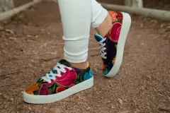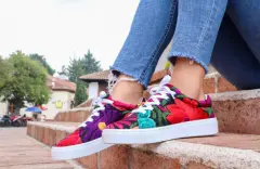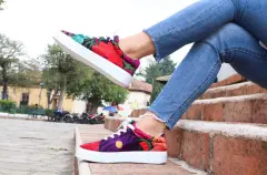 Tenis con bordado de flores artesanales con suela sintética en color blanco disponible en talla3,4,y 5.