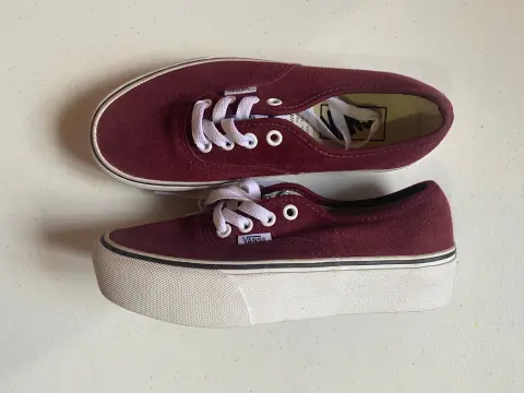 Tenis con plataforma 22mx. Tenía Vans con plataforma, talla 22 mx, acabado terciopelo. Nuevos sin etiqueta.