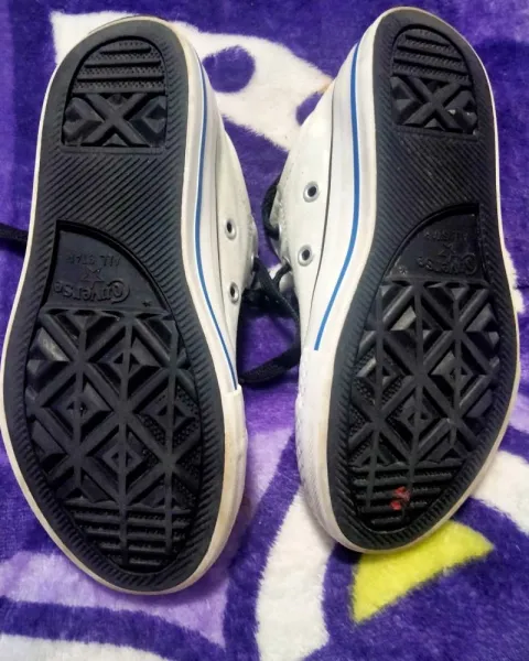 Converse del #18 la suela como pueden ver están nuevos solo que se salpicado un poco con cloro pero este no se ve mucho esta en buenas condiciones solo por el detalle de las gotitas de cloro
