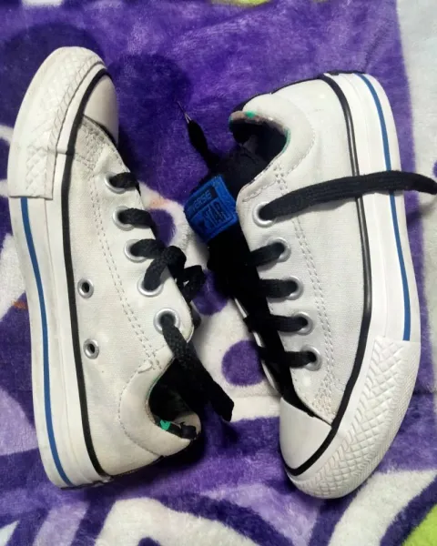 Tenis convers. Converse del #18 la suela como pueden ver están nuevos solo que se salpicado un poco con cloro pero este no se ve mucho esta en buenas condiciones solo por el detalle de las gotitas de cloro