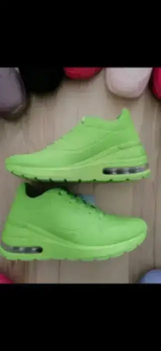 Tenis de super Moda con tacón de Cuña, totalmente Nuevos, Verde Fluorescente, burbuja de aire y plantilla memory foam para mayor comodidad