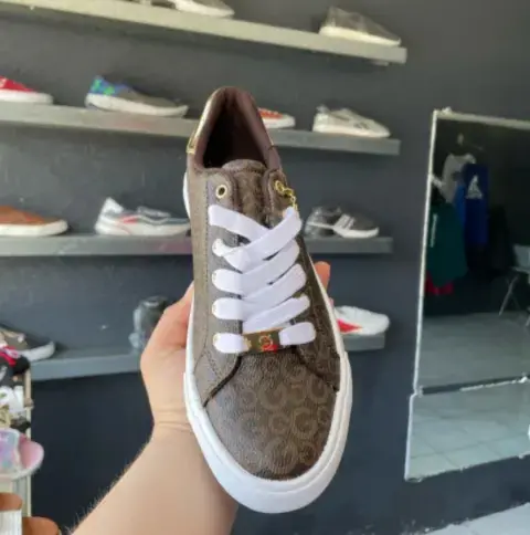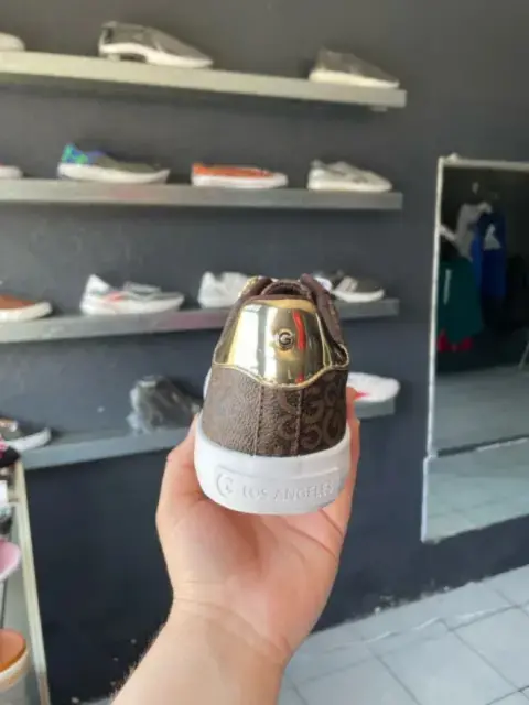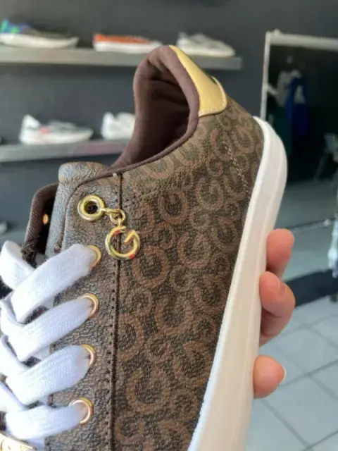 Tenis GUESS originales y nuevos, color cafe con detalles dorados, casuales, en tendencia, talla 9us 6mx.