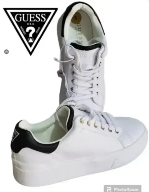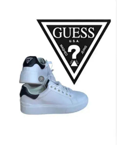 HERMOSOS TENIS GUESS SUPER EN TENDENCIA- AJUSTABLE CON LACE-UP- TALLA 4M MEX. 7M USA- TONO BLANCO CON RIBETE EN LENGUETA Y SUELA EN TONO NEGRO- HARDWARE EN TONO DORADO- SUPER CÓMODOS- PIEL- SIN CAJA- NUEVOS