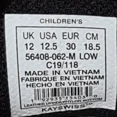 Tenis Kswiss #18.5 Kids Unisex. Tenis K-wsiss Negro, Suela Caucho El eje mide aprox low-top desde el arco,Superior de cuero, Forro de cuello textil entresuela EVA, Nuevos y OriginalesSuper Oferta