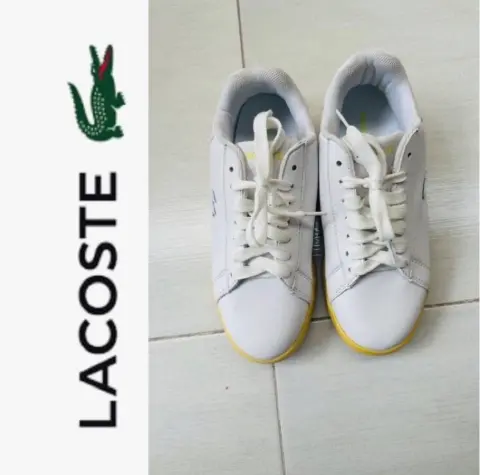 Lindos tenis marca Lacoste en color blanco no son de uso pero lo tenían para probarlos no tienen ningún detalle solo un poco de uso blanco