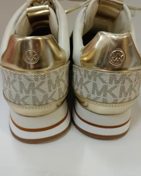 Tenis Mk, viene con monograma, en tres colores; blanco, café y dorado, en 24.5 mexicano viene a la talla, completamente nuevos