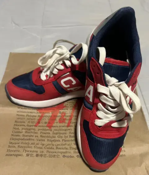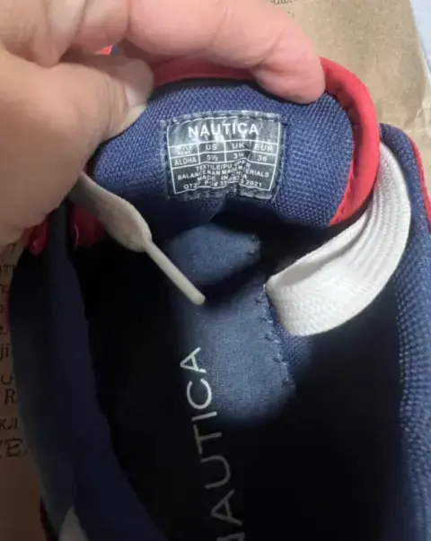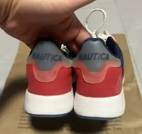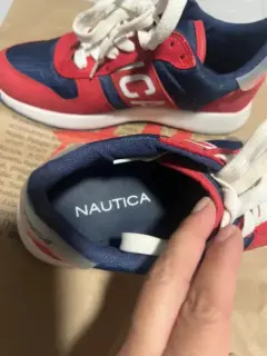 Hermoso tenis marca Náutica en colores rojos y azul, sin detalles , talla 5.5 americano pero queda a un 3 mx.