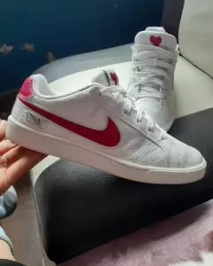 Tenis Nike para dama con algunos detalles en la parte de enfrente, de lo demás están enteros. Vienen amplios le pueden quedar a alguien del #5