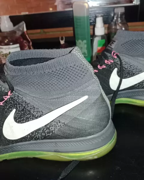 Tenis nike tipo deportivos, son de bota y en la bota cuenta con tipo resorte como si fuera calcetin, las agujetas no son como tal para apretar porque por si solo el tenis tiene resorte y no se sale, los tenis se encuentran en muy buen estado, los tenis fueron traidos de EUA y son completamente originales y los tenis no tienen ningun detalle, el dia que se entreguen se enviaran perfectamente limpio, los tenis no están despistados ni desgastados ni NADA
