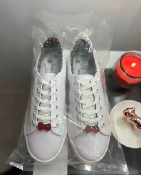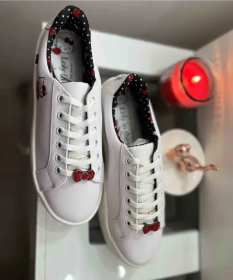 Fantásticos tenis de Loly in the Sky ORIGINALES y NUEVOS, son la edición especial de Hello Kitty (❌NO te dejes engañar con los similares de Coppel de baja calidad) Son blancos con aplicaciones en rojo. Femeninos y muy combinables. SIN DETALLES para envío inmediato los vendo porque no me quedaron 😞 y fue un regalo. Precio en tienda $2299 Talla exacta número 24