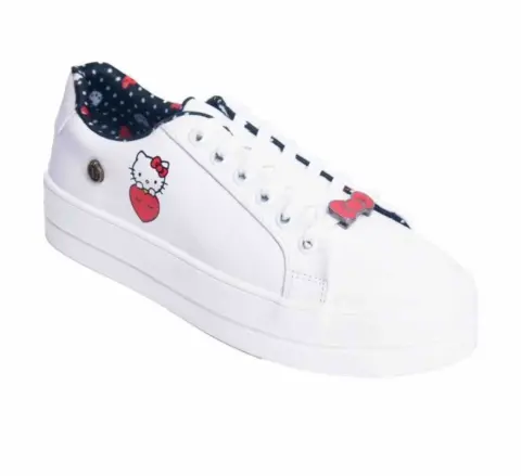 Tenis nuevos LoLy in the Sky hello Kitty. Fantásticos tenis de Loly in the Sky ORIGINALES y NUEVOS, son la edición especial de Hello Kitty (❌NO te dejes engañar con los similares de Coppel de baja calidad) Son blancos con aplicaciones en rojo. Femeninos y muy combinables. SIN DETALLES para envío inmediato los vendo porque no me quedaron 😞 y fue un regalo. Precio en tienda $2299 Talla exacta número 24