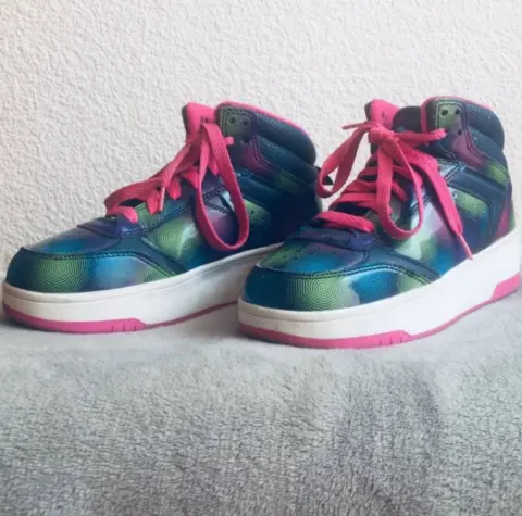 Tenis Patín, Pueden usarse como zapato o Patín, tienen botón para usar o guardar las ruedas. Marca Heelys. Talla 3 pero viene amplio. Mi código de descuento MoraB3XoL0