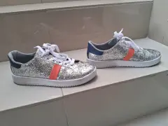 Tenis plateados con brillo. Marca Lob. Talla 26, pero quedan desde un 25.5 MX. Con brillos (brillantina). Muy poco uso. Sin detalles. Padrísimos!