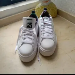 Tenis puma de plataforma.. Estos tenis PUMA, son super cómodos y los puedes usar con faldas, vestidos, shorts. Tienen detalles de colores 🌈✨ en plateado, 🟣, verde 💚 rosa 🩷 amarillo 💛. Van con todo.