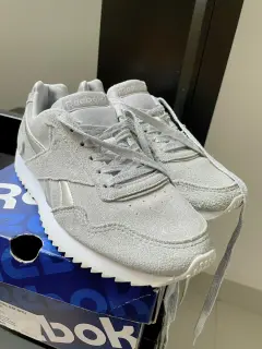 Tenis Reebok color plateados, talla 22.5. Originales y de colección. son de piel. Muy poco uso, en perfecto estado y sin detalles!
