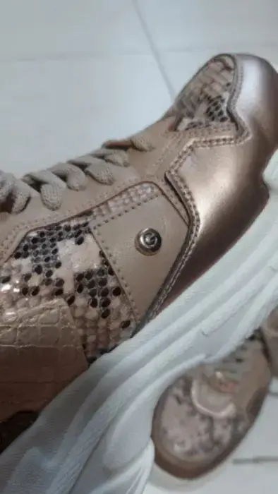 Tenis marca G by guess color tal cual las fotos,rosa Gold,café metalico algo asi es el color,suela blanco, con estampado animal print puestos un par de veces ! Esta super bonitos y comodos talla #23