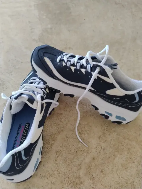 Tenis skechers. Hermosos tenís skechers Air-Cooled Memory Foam ligeros y cómodos color azul marino y blanco, talla 9.5 US, en perfecto estado y con 1 sola vez de uso.