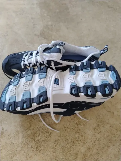 Hermosos tenís skechers Air-Cooled Memory Foam ligeros y cómodos color azul marino y blanco, talla 9.5 US, en perfecto estado y con 1 sola vez de uso.