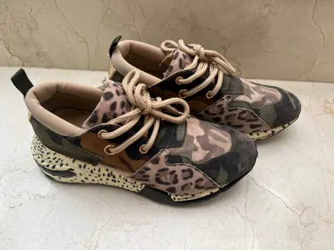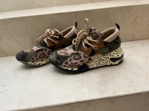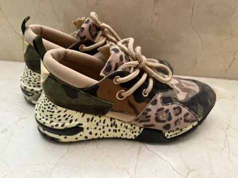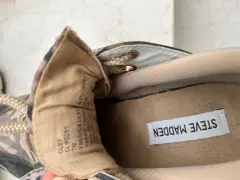 Tenís steve madden. Súper modernos tenis altos de la marca steve maddenColor café y verde con animal printTalla 7 americano24mexicanoSe usaron una sola vez