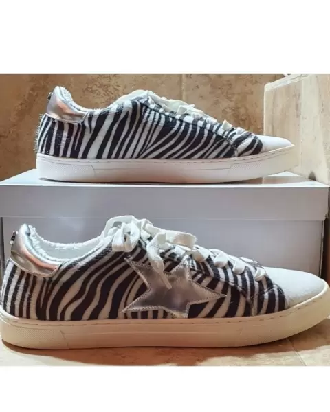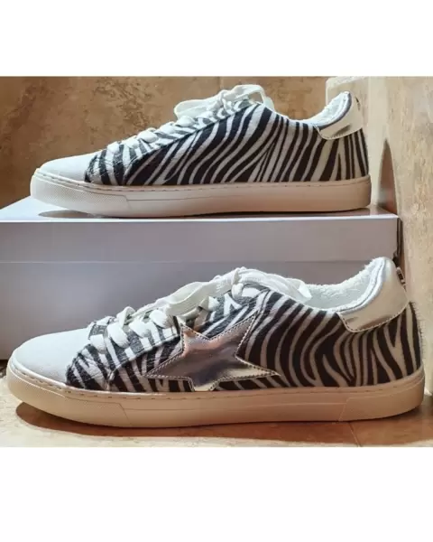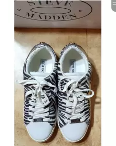 Padrísimos Tenis Steve Madden con estampado cebra, material sintético suave textil y tipo piel. Con una estrella plateada al costado. Totalmente nuevos, SIN detalles.