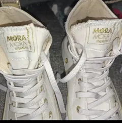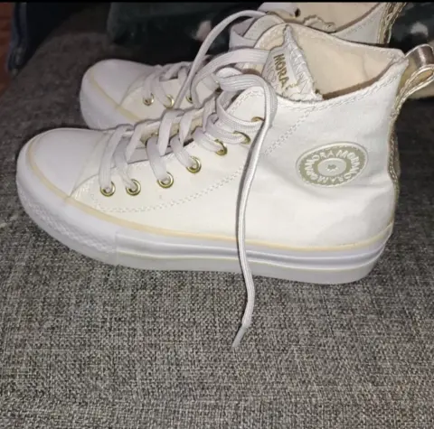 Tenis hueso, tipo converse, una puesta,en buen estado con caja del 23 super cómodos y con plataforma