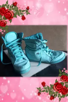 tenis de bota, verde agua, corte textil suela sintética, en perfecto estado, talla 3.5