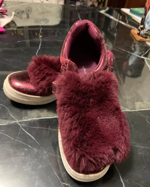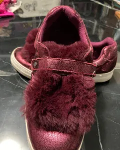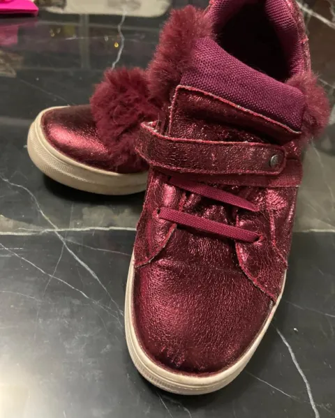 Tenis vino c&bond. Tenis brillosos, lengüeta de peluche, no se quita agujetas de resorte y velcro