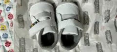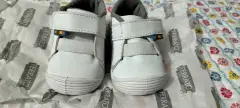 Tennis de 11 CM para niño, color blanco, poco uso en excelentes condiciones. Fáciles de combinar con cualquier color, de verdad que nos sacan de apuros es muy sencillo ponerlos ya que son de resorte y Velcro.
