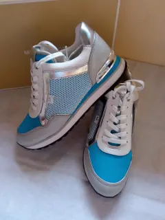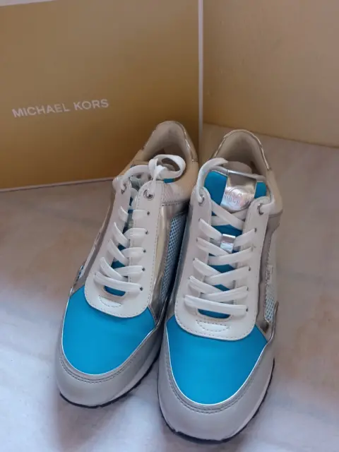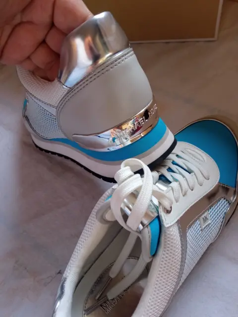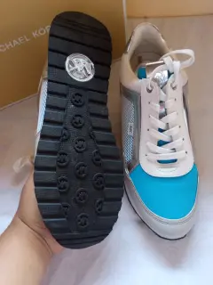 Tennis MK originales Color azul con aplicaciones en plata y blancoTalla 24Tienen 1 puesta