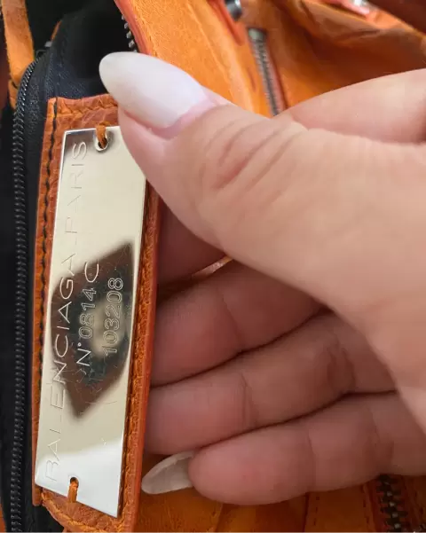 Bellísima y Espectacular bolsa original de la marca Balenciaga color naranja, luce increíble puesta ideal para toda ocasión, cuenta con espejo interior y correa para mano y hombro