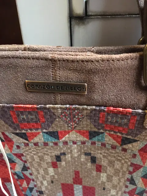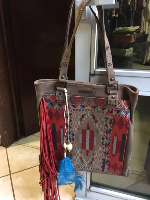 Bolsa boho chic. Linda bolsa boho chic Corazón de melón. Modelo Morela. Completamente nueva. Hecha en piel y aplicación textil de telar. Plumas de aves reales. Cintas y estoperoles. Una hermosa pieza.