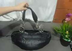 Bolsa de piel negra!. Bolsa de piel 100 % , es negra,con varios compartimentos por dentro, tiene asas con accesorios de metal plateado, cierre posterior,sin detalles está en perfecto estado