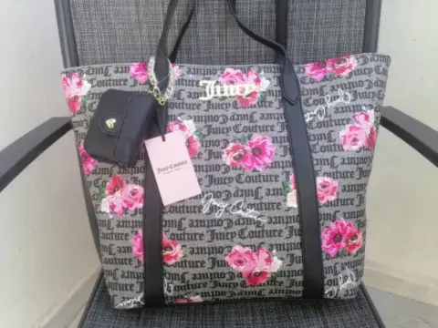 Bolsa divina Juicy Couture. Vendo bolsa Couture tipo Tote, con detalles de flores hermosas, las cuales le dan un contraste hermoso, completamente nueva