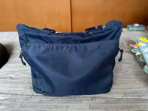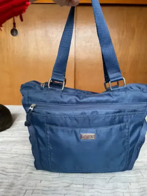 Hermosa bolsa E.t.a. by Rosetty.Tiene muchos compartimientos, cierres, divisiones.Incluye cartera adicional para tarjetas. Ideal para viajes.Tela super resistente. Color azul con interiores rosas.