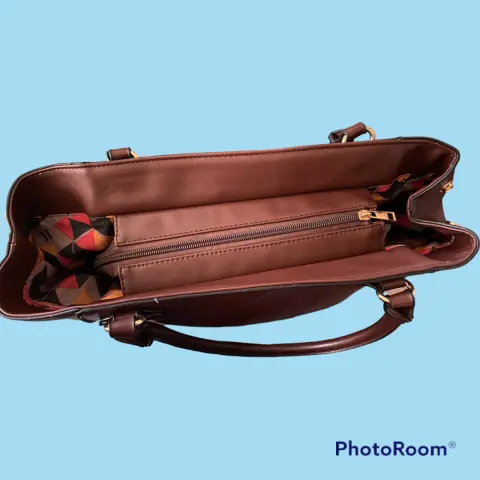 😍Hermosa bolsa café tipo tote ,de la marca huser cuenta con broches en la parte lateral . Tres compartimientos en el interior , ligeramente raspada de la parte de enfrente y abajo casi imperceptibles se muestran en la fotografía .