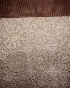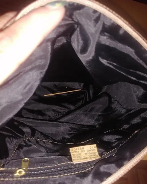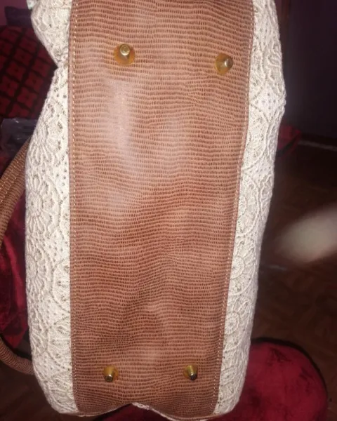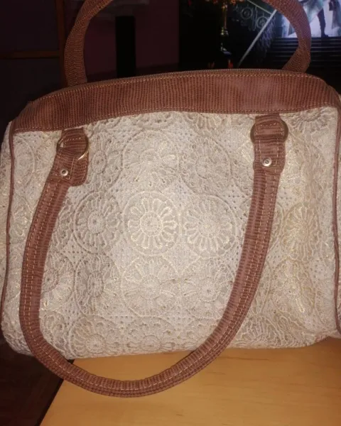 Bolsa tote bordada en hilo beige y dorado, correas cafés cortas, con forro, con cierre!!!