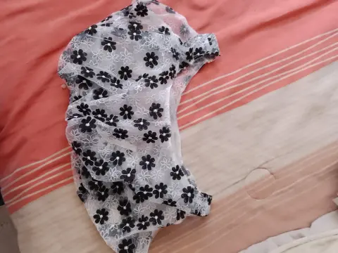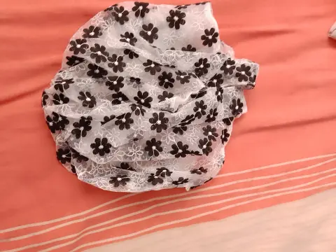 Bolsa tote mini. Bolsa tote mini de material muy ligero excelente diseño de flores negras sobre fondo blanco, tela similar al tul pero resistente
