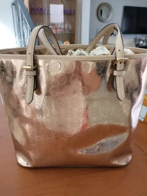 Bonita bolsa en tono bronce con charms dorado muy espaciosa por dentro en perfecto estado original comprada en palacio de hierro no cuento con cubre polvo