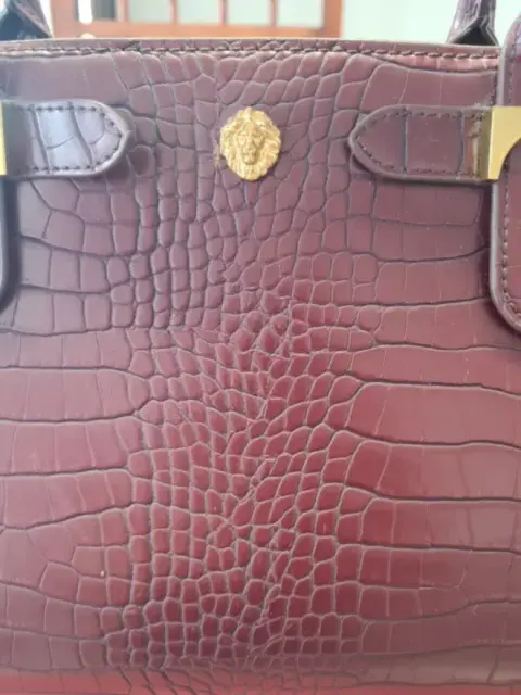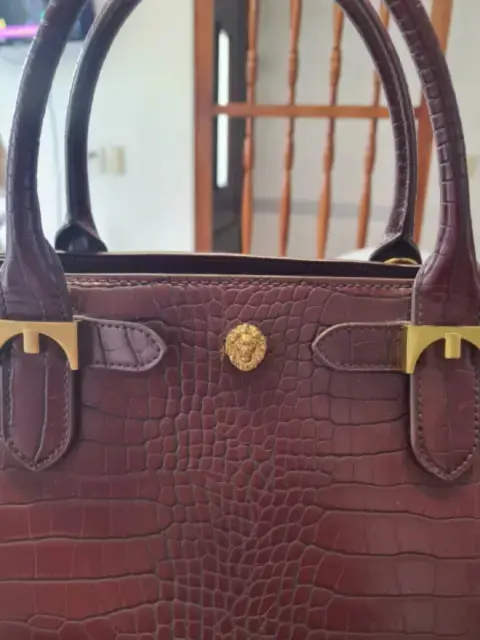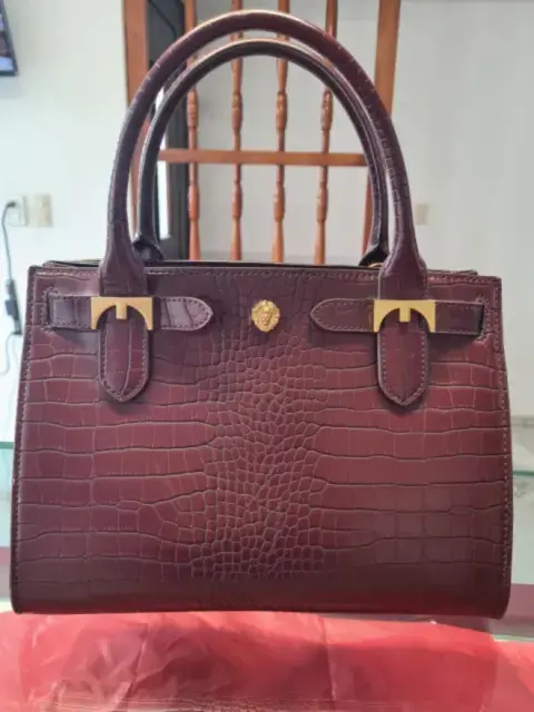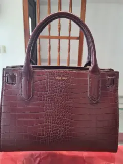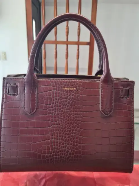 BOLSA TOTTE ANNE KLEIN ,PIEL IMITACION LAGARTO, COLOR GUINDA