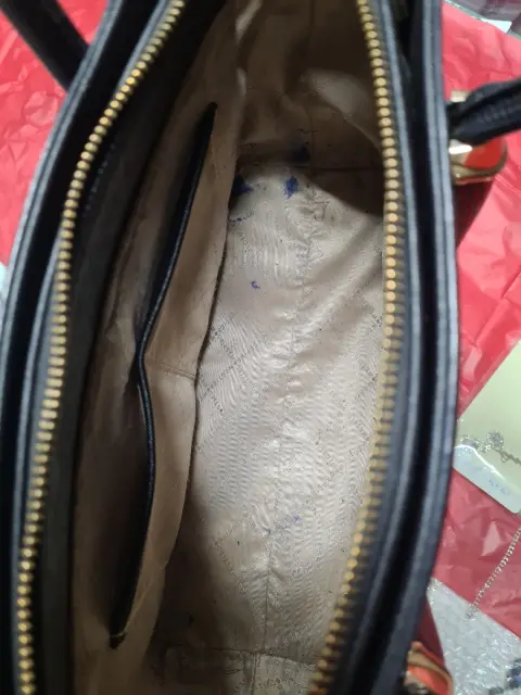 Bolsa westies, usada, detalle en las agarraderas y en el forro interior