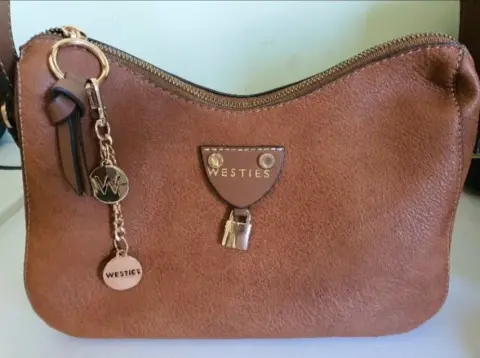 Bolsa Westies Color Café. Preciosa bolsa color café, aplicación de borla, estampado liso, con cierre, correa ajustable, adorno metálico desprendible y forro textil. Super fashion. Medidas de la bolsa en la foto. 👜🧡💖