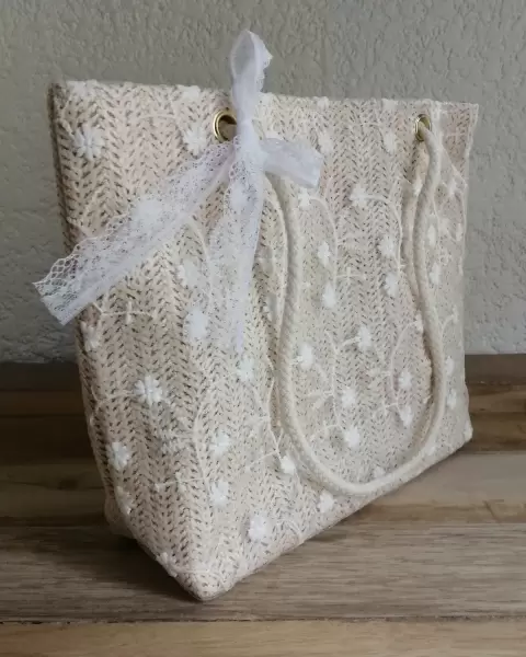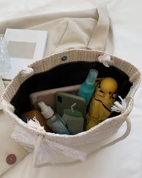 Bolso de hombro tipo paja con encaje