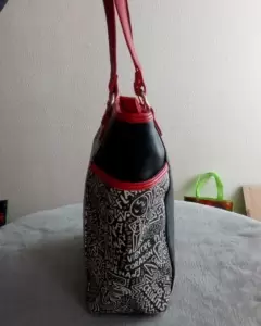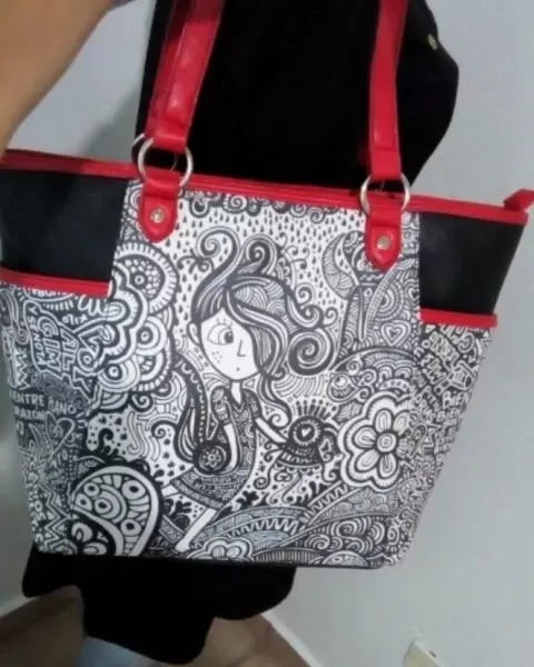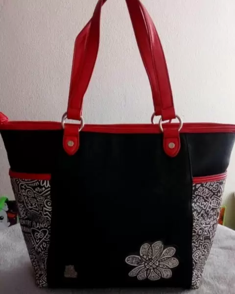 Bolso tote "Distroller" moderna. Bolso tote moderno "Distroller" estampada en color negro//blanco/rojo, las asas rojas, 32 cm de alto y 45 de largo