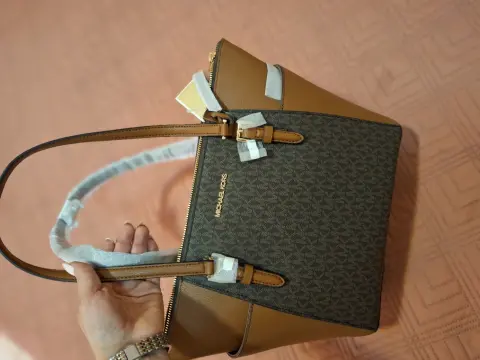 Lindo bolso de forma tote, original de marca MK... color chocolate con caqui. 100% original y nuevecito.