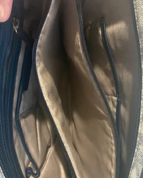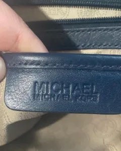 Bolso tote monogram blanco con azul marino Michael Kors.Es muy amplia y cuenta con múltiples espacios al interior, cuenta con cubre polvo.Medidas 47x30x16 cm