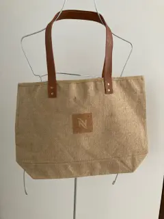 Jute Tote Bag, CongoMaxi bolsa de yute con correas de piel vegana y forro interior de manta.Marca: NespressoCualquier duda, por favor escríbeme!